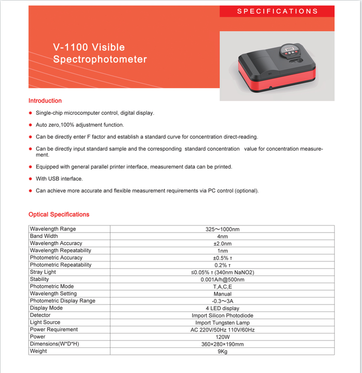 Digital Display Visible Spectrophotometer Lab Auto V-1100 Images |
